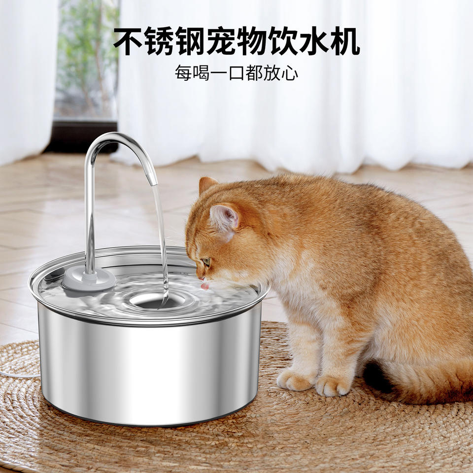 Stainless Steel Pet Water Fountain With Circulating Filter Automatic Cat Dog Dispenser Smart Water Feeder USB Version