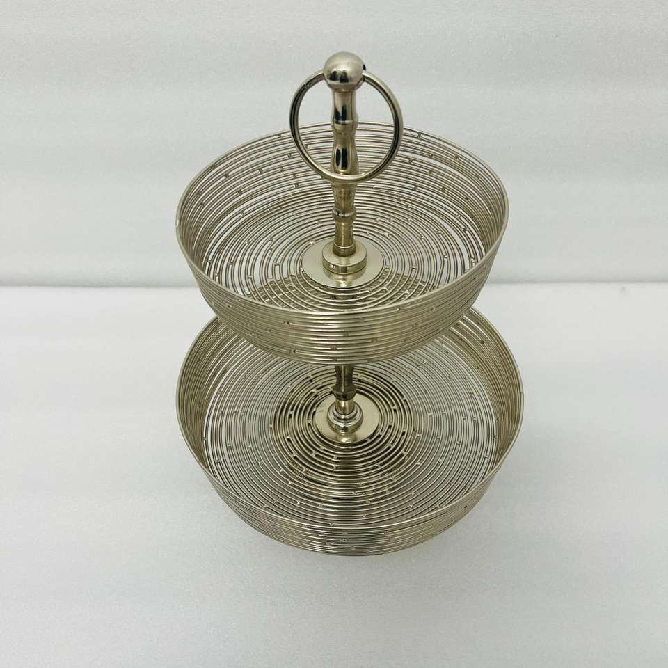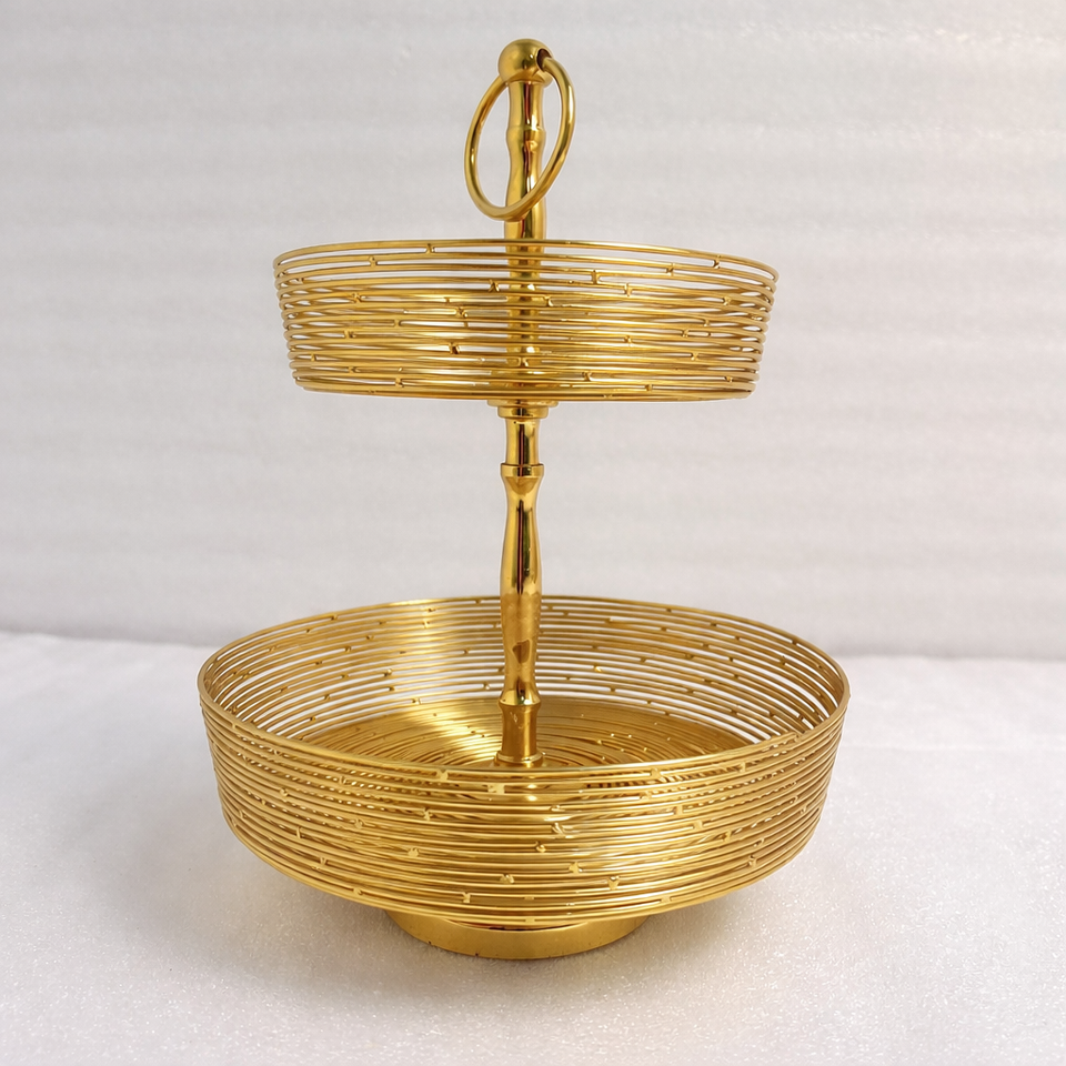 Stainless Steel Polished Mesh Wire 2 Tier Handmade Cake Stand Multi-Purpose Tableware Caddy Fruit Dessert Tray Basket Rose Gold