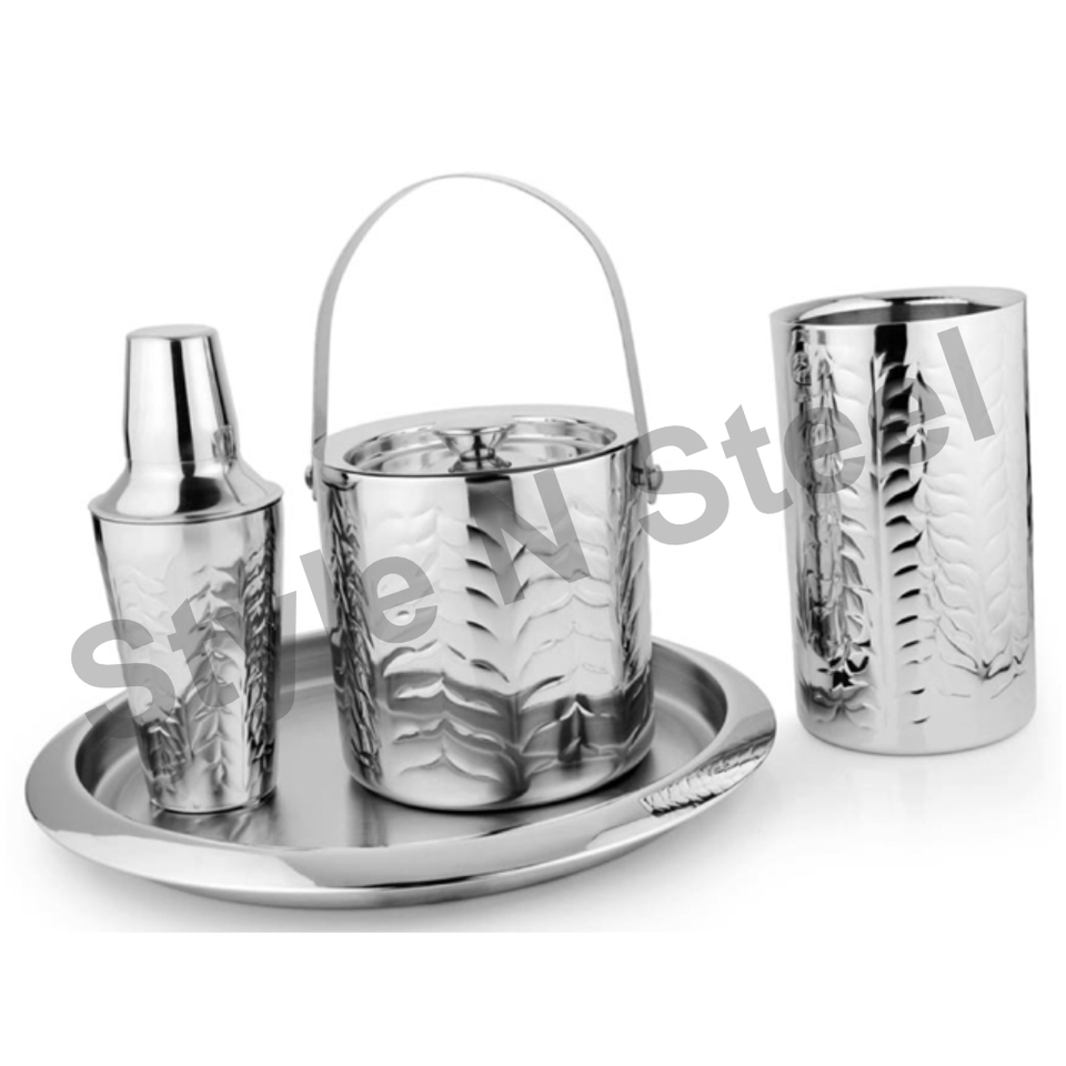 Stainless Steel Premium 4-piece bar Set with Outside Etching and a Stylish Classic Design With Unique Bar Set