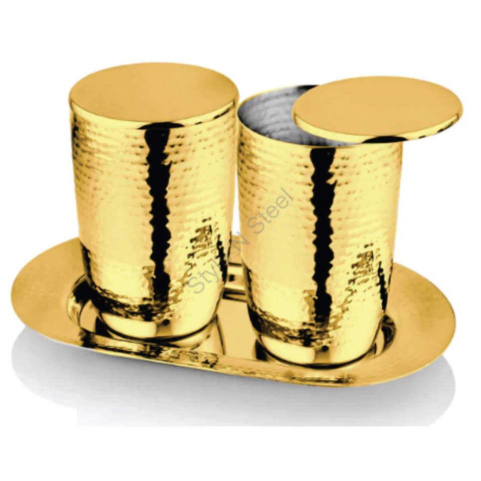 Stainless Steel Premium High-quality 2-piece Set With Gold Hammered Glass, an SS Lid, and SS Tray Color CLASSIC Stylish Design
