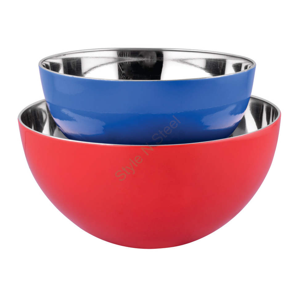 Stainless Steel Premium Salad Bowl Without Printed Designs in Blue and Red Colors with a Stylish Classic Design
