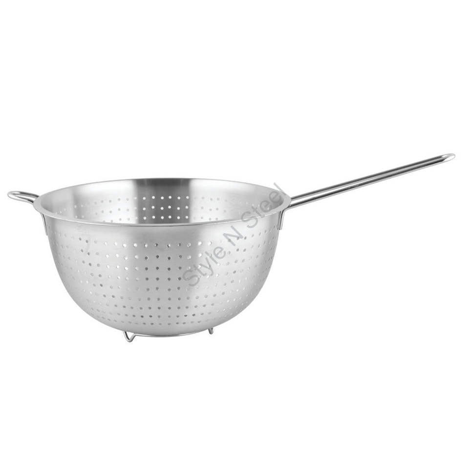 Stainless Steel Premium Strainer with a Wire Single Handle in a Silver Color and Classic Design