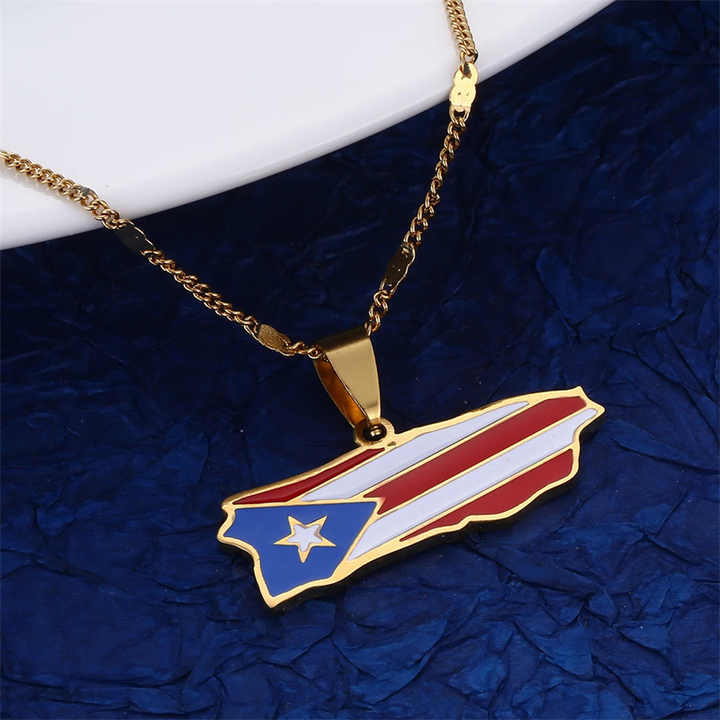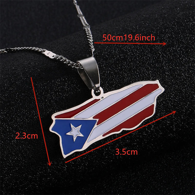 Stainless Steel Puerto Map Flag Pendant Necklace with Strand Chain Trendy Cross Shape Jewelry for Party Occasions Puerto Ricans