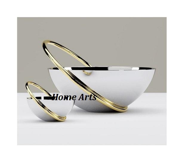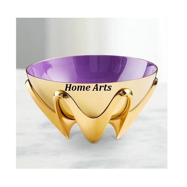 Stainless Steel Purple And Gold Color Chocolates Bowl With Designer Stand Handmade Round Shape Dessert Bowl