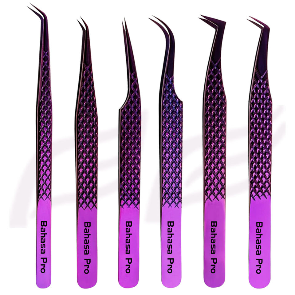 Stainless Steel Purple Eyelash Tweezers for Eyelash Extension High Quality Eyelash Extension Tweezers Set Makeup Tools