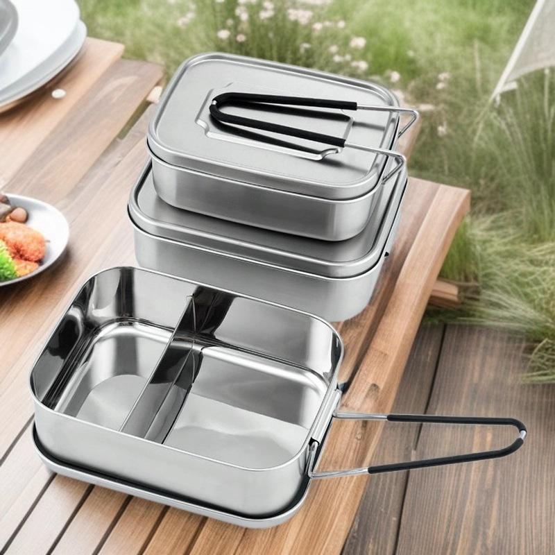 Stainless Steel Rectangular Lunch Box With Lid Stackable Bento Box For Student And Office Use