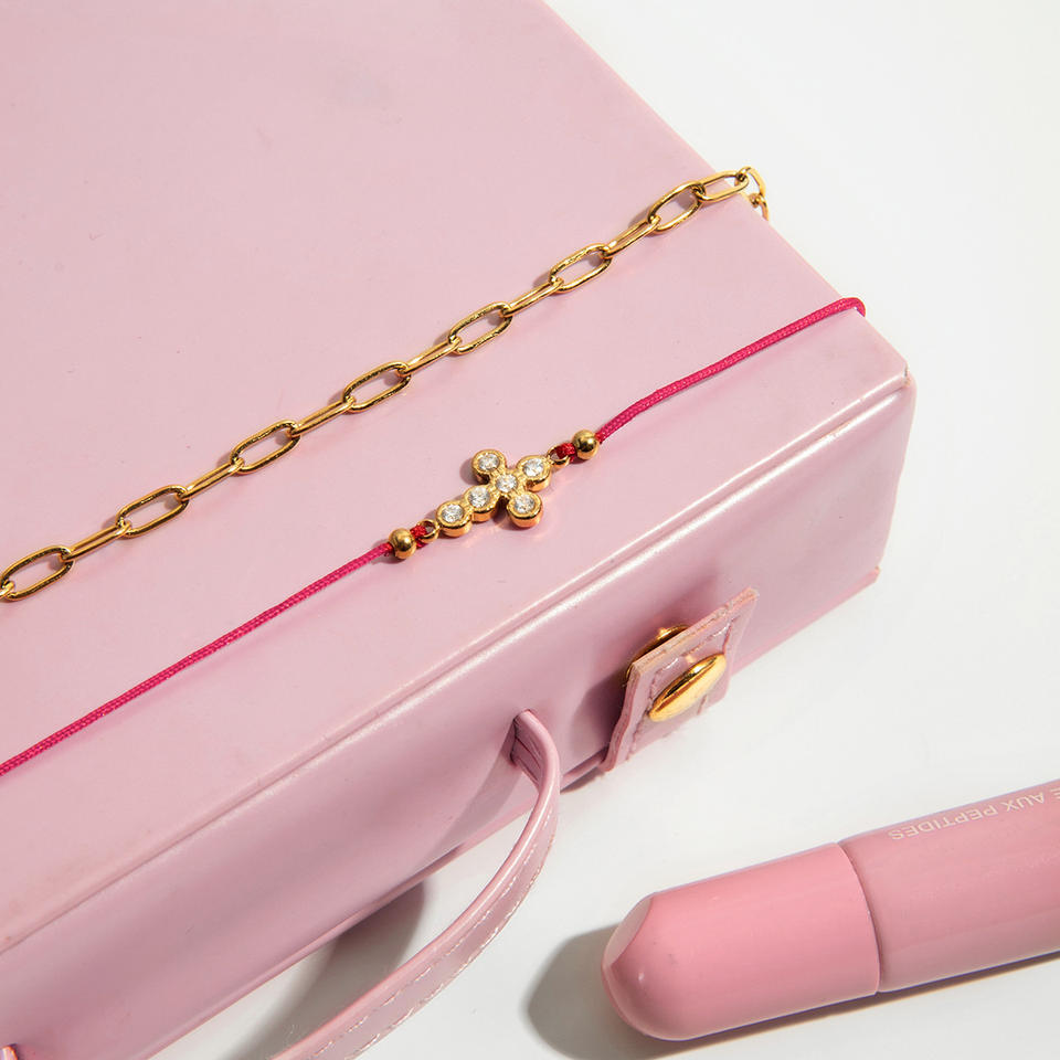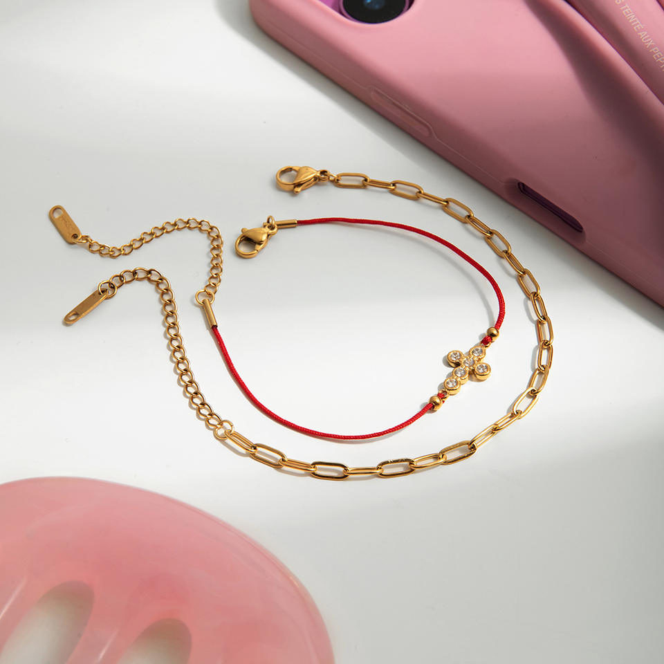 Stainless Steel Rhinestone Cross Red Rope Bracelet Set For Women Gift Jewelry