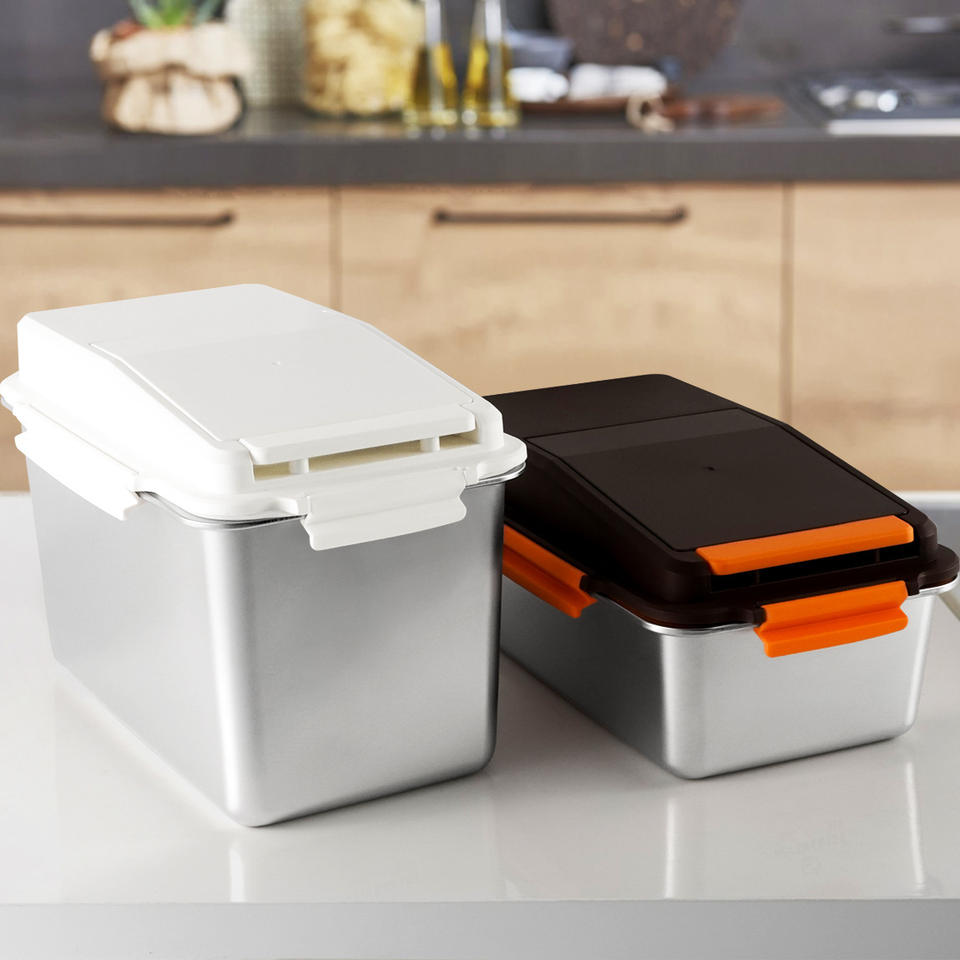 Stainless Steel Rice Bucket 9L 10L Sealed Lid Rectangle Kitchen Grain Storage Container Insect Proof Moisture Proof