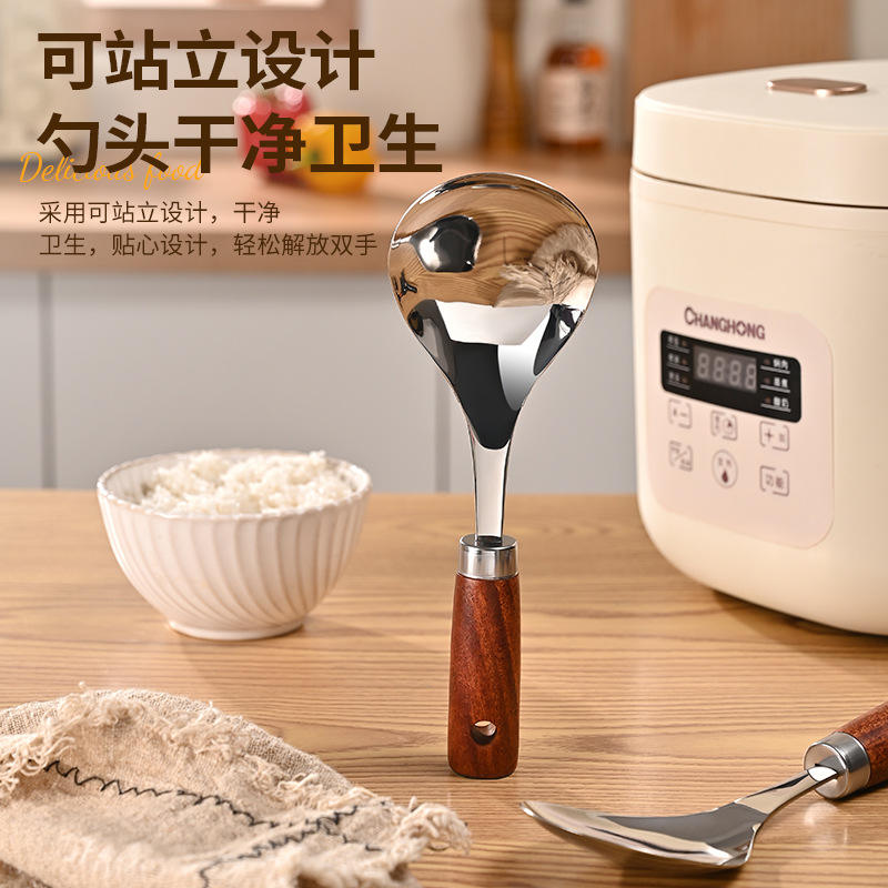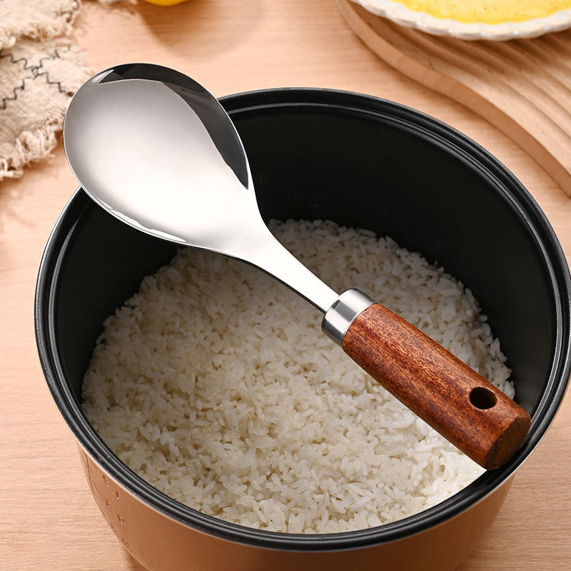Stainless steel wooden handle rice spoon