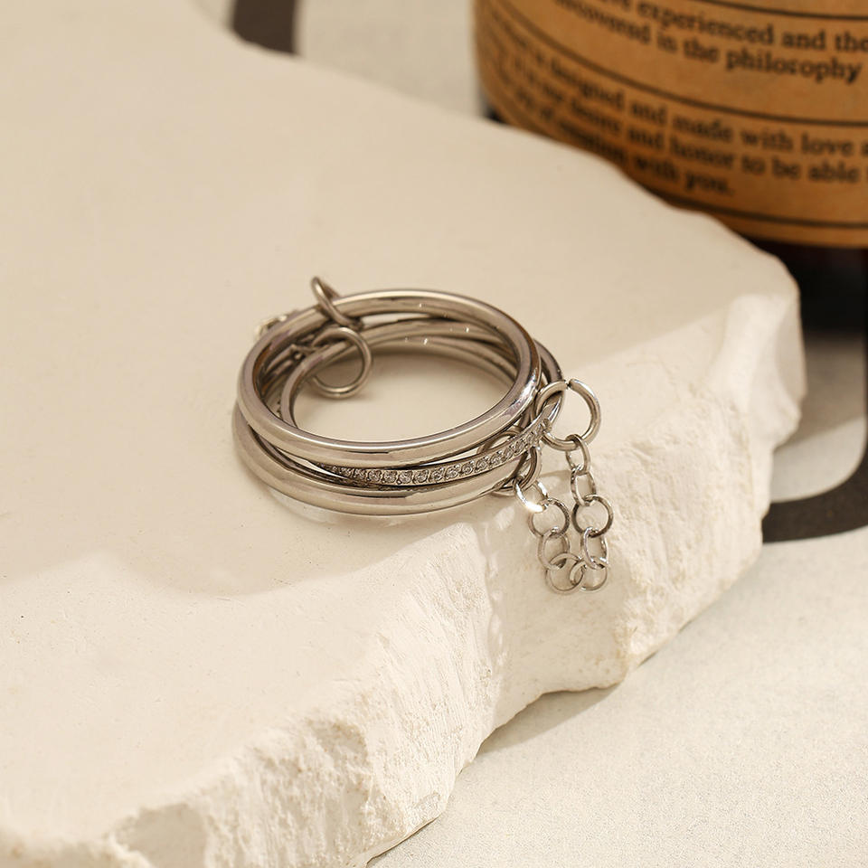 Stainless Steel Ring Stackable Geometric Design Steel Color Unisex Jewelry Gift