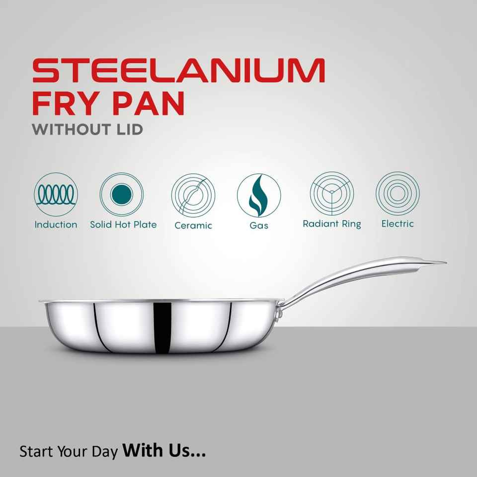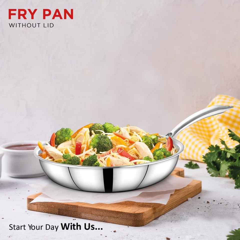 Stainless Steel Riveted Handle Fry Pans without Lid Exotic Silver Shining Durable Design Food Grade Cookware Easy Clean