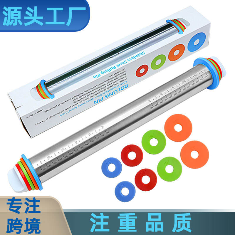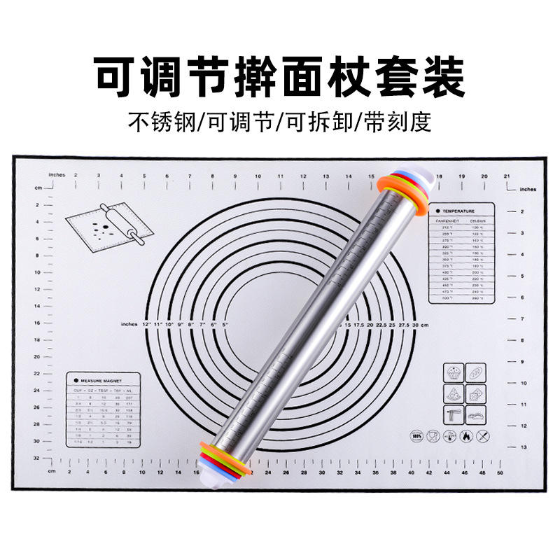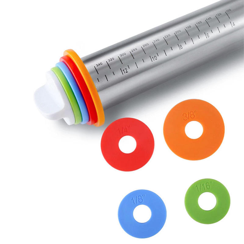 Stainless Steel Rolling Pin 17 Inch Adjustable Thickness With Graduations For Bakery Dough Kneading Tool