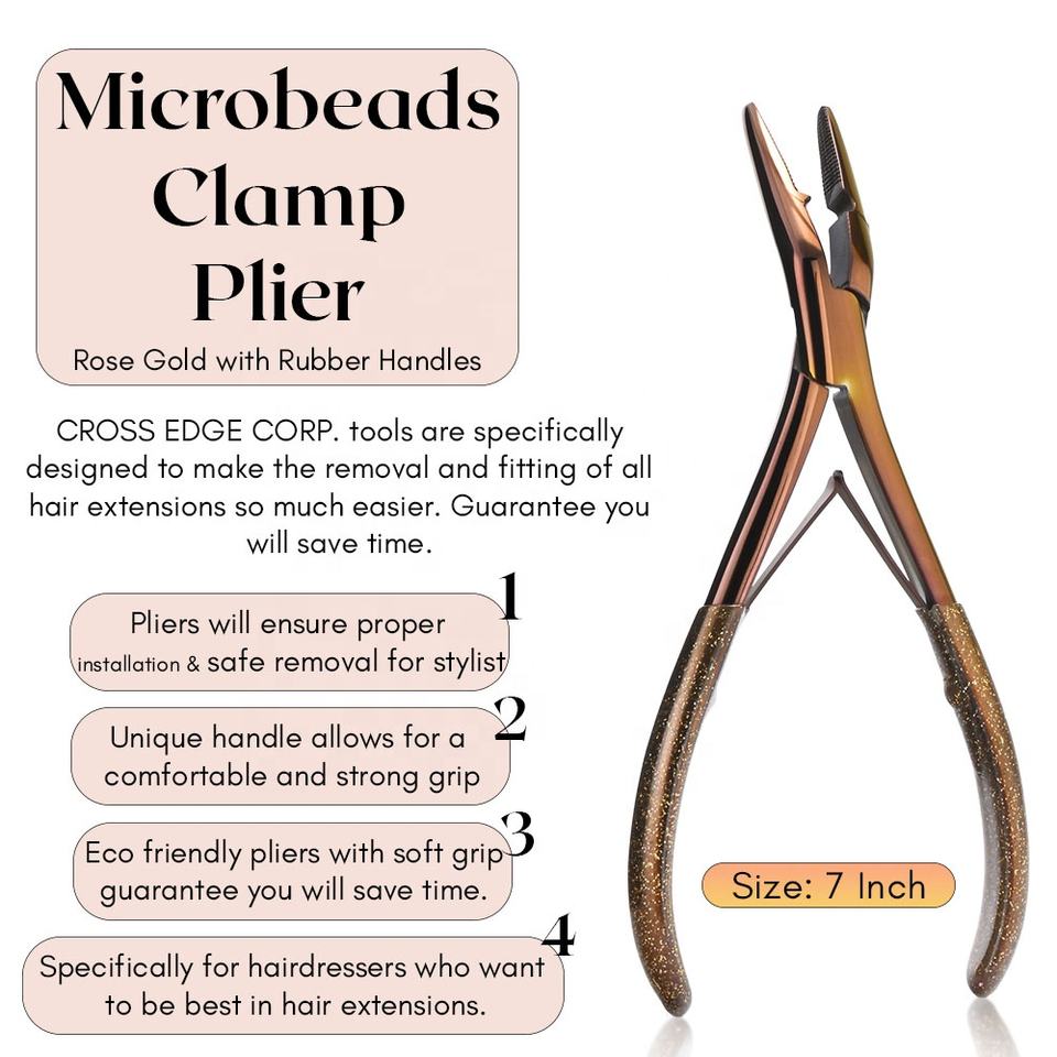 Stainless Steel Rose Gold Micro Ring Pliers - Hair Extension Beads Applicator & Removal Tool Kit for Professionals