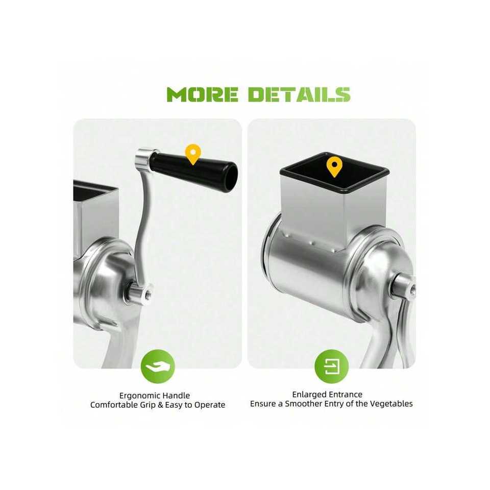 Stainless Steel Rotary Drum Grater Manual Vegetable Cutter and Slicer Handle Countertop Vegetable Chopper