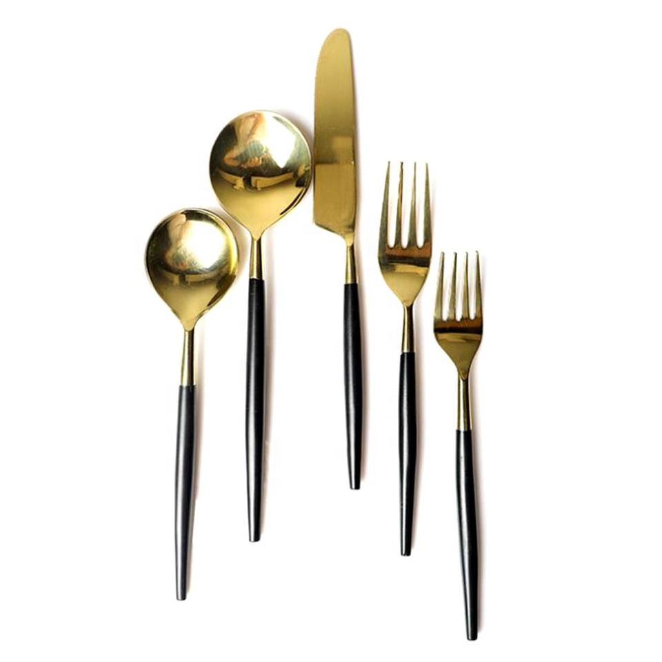 Stainless Steel Round Black Enamel Handle Gold Cutlery Set Stainless Steel Cutlery Set with Metal Handle Tableware Sets