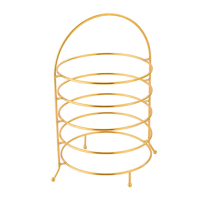Stainless Steel Round Tray Rack 3 Tier Gold Finish For Hotel Tea Coffee Serving