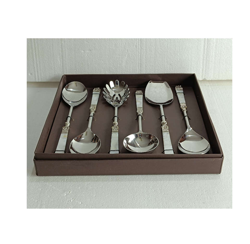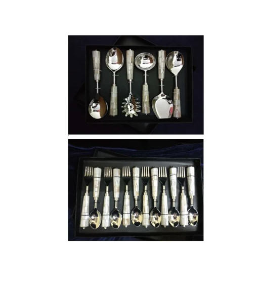 Stainless Steel Salad Server 18 Pieces Set Mother Of Pearl Handle design Crafts Manufacture Affordable Price
