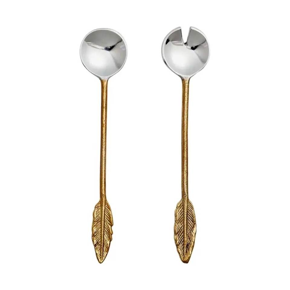 Stainless Steel Salad Server With Brass Embossed Platted Headband Design Handle Salad Server for Home Tabletop Use