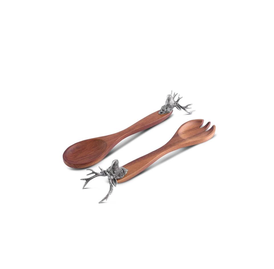 Stainless Steel Salad Spoon Engraved Wood Handle Design Piece Cooking Utensils for Dinning Table Use
