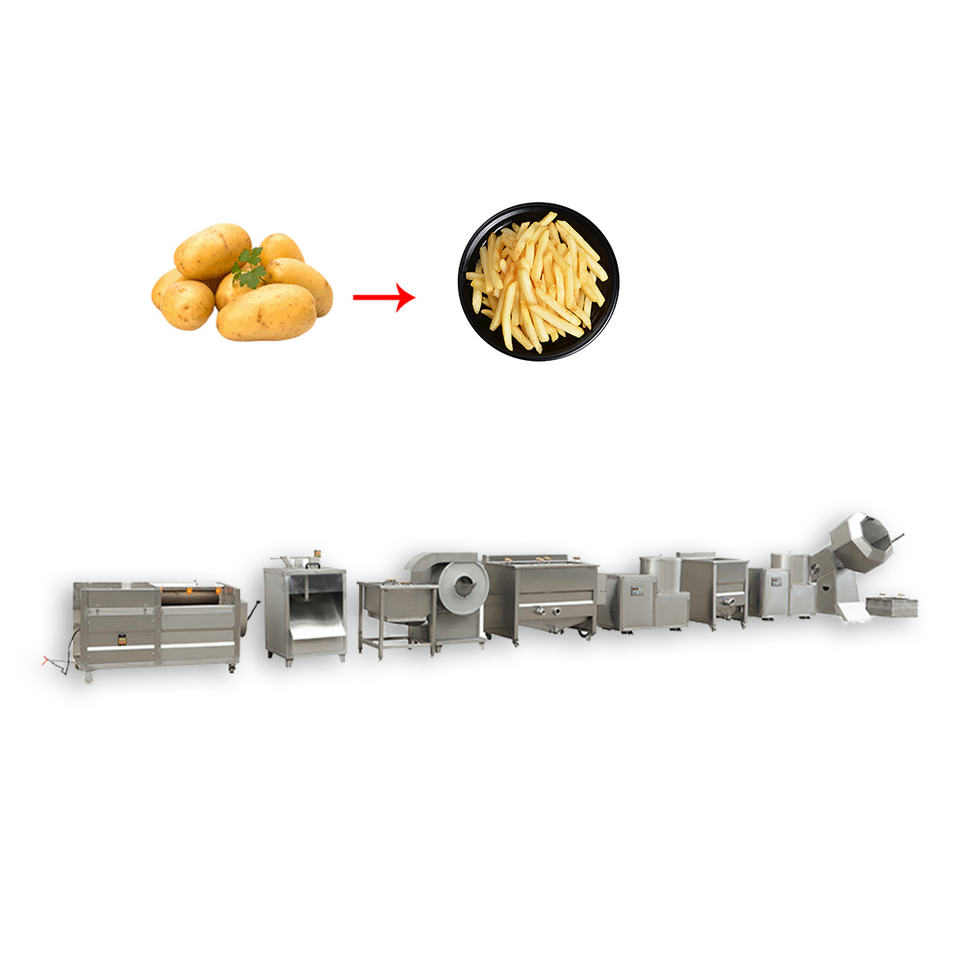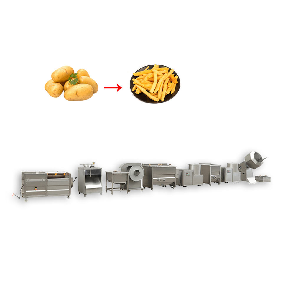Fryer, Brush cleaning and peeling machine, Strip cutting machine, Blanching machine, Dehydration machine, Oil removing machine, Quick freezer, Capper