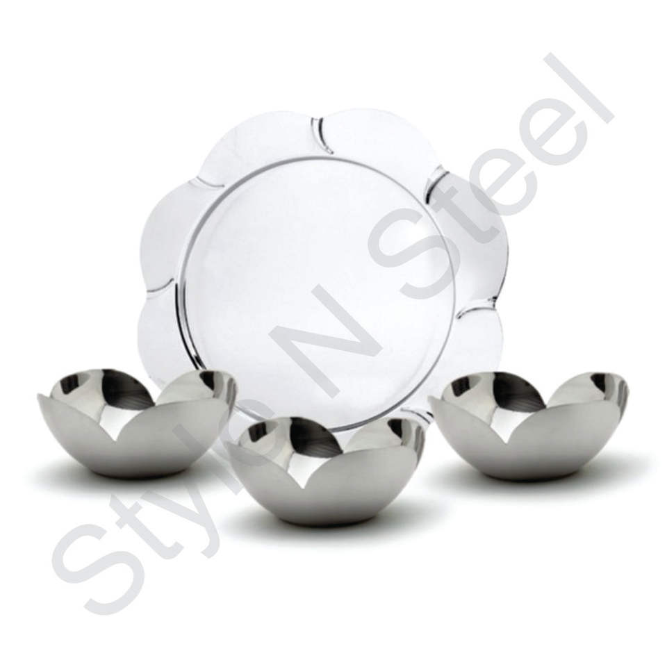 Stainless Steel Serving Nut Bowl Set with Flower Cut Silver Color Fruit Salad Food Prep Serving Bowl Glass Mixing Bowl