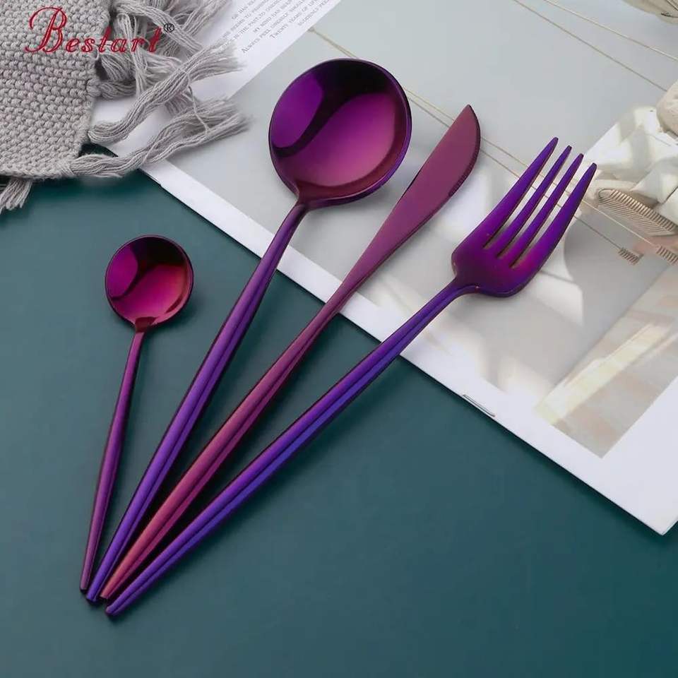 Stainless Steel Set Of 4 Flatware Cutlery Spoon Knife Fork Perfect Kitchen Tabletop Restaurant Use Multicolor Finished Products