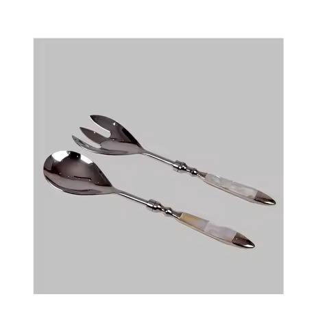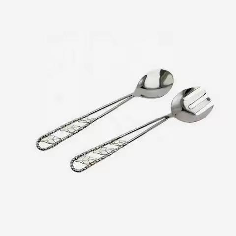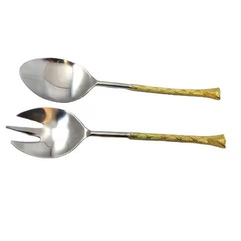 Stainless Steel Shining Polish Designer leave style Cutlery Set High Quality Polish Metal Modern Salad Spoon and Salad Server