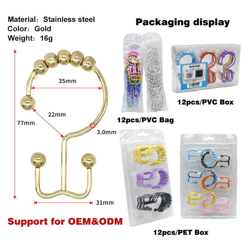 Stainless Steel Shower Curtain Hooks Rustproof Bathroom Curtain Rings
