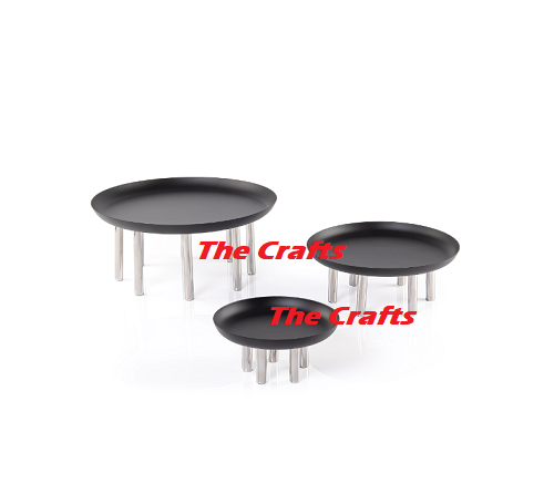 Stainless Steel Silver Color Cake Serving Stand Set Of 2 Round Shape Pastry Cake Stand For Kitchen Accessories