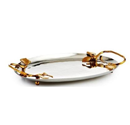 Stainless Steel Silver Color Chocolate Tray Highest Quality Serving Dessert Snacks Tray With Leaf Handles