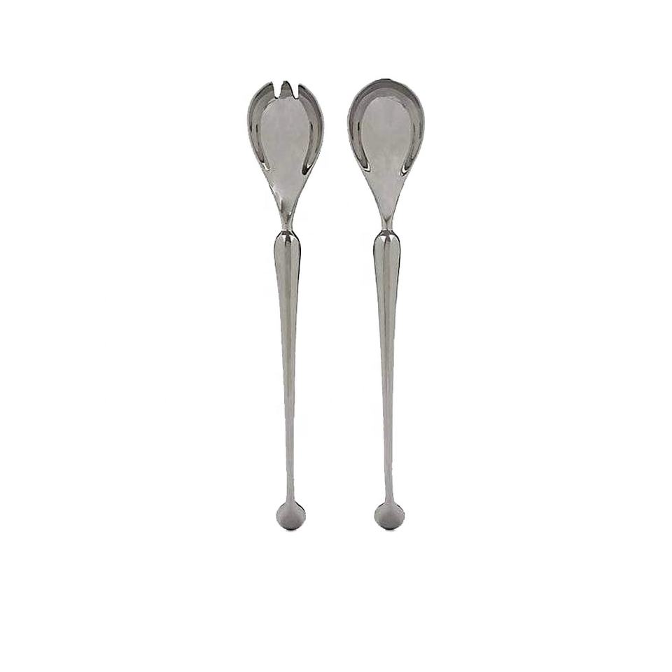 Stainless Steel Silver Polished Salad Server with Handmade Design End Handle Salad Servers Set of 2 for Kitchen Food