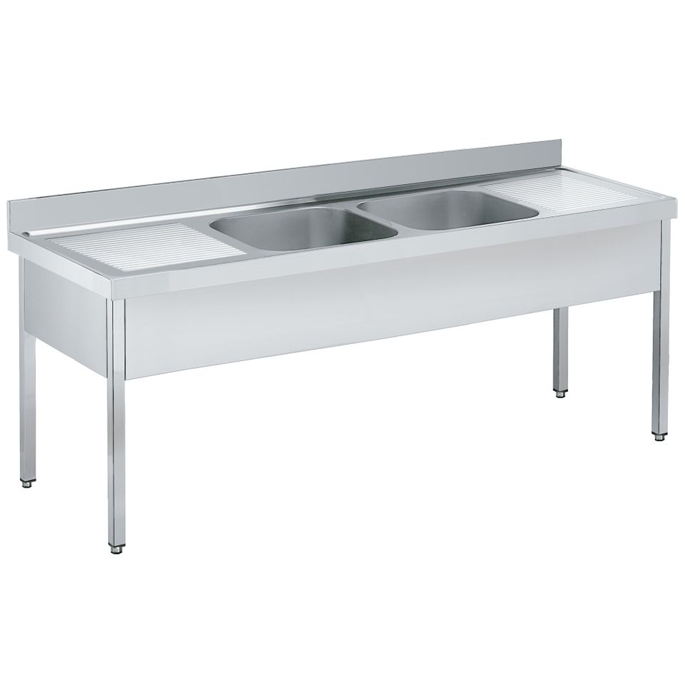 Stainless Steel Sink with Frame 2-Drainers 2-Bowls 600x500x300mm 2200x700x850mm EURAST Model 22310227-Single Double Bowl Faucet