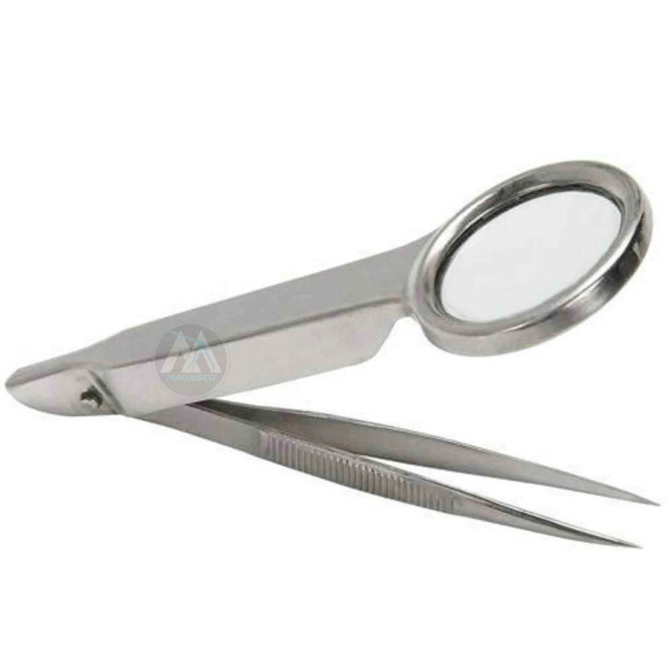 Stainless Steel Slanted Tweezers with Magnifying Glass for Precise Eyebrows and Hair Removal Eye Bro Splinter Tweezer Magnifiger