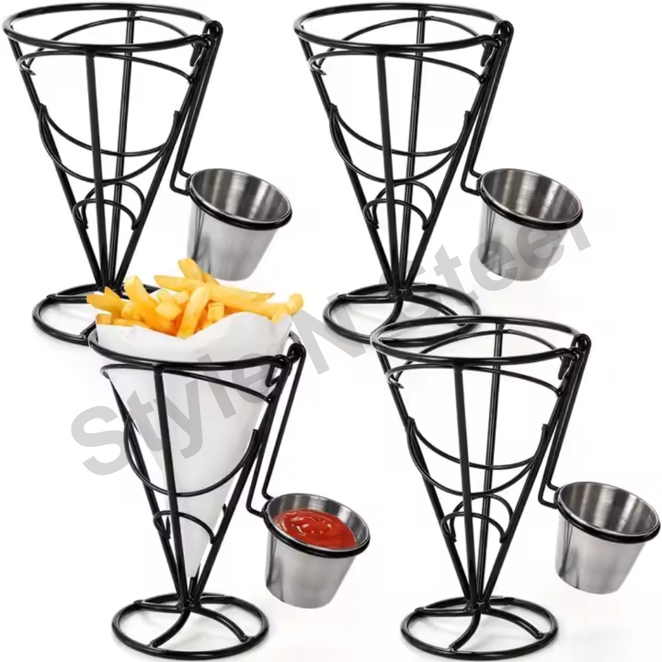 Stainless Steel Snack Fried Metal Wire French Fries Stand Cone Multi Color Wire Snacks Holder Hotel Restaurant Kitchen