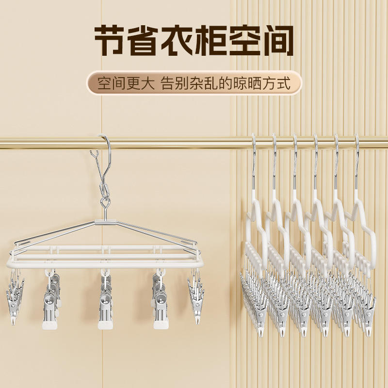 Stainless Steel Sock Drying Rack With Clips Windproof Multi Functional For Underwear And Socks