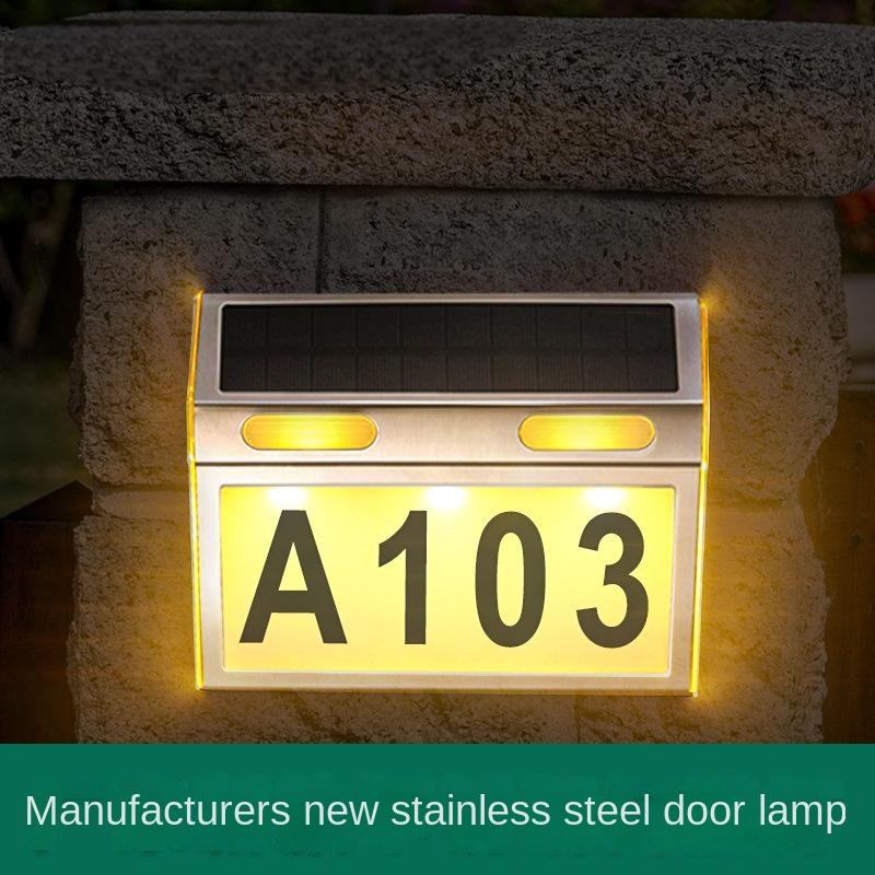 Stainless Steel Solar House Door Number Address Signs LED Light Outdoor Solar Wall Lamp with IP65 for Garden Landscape Iron Body