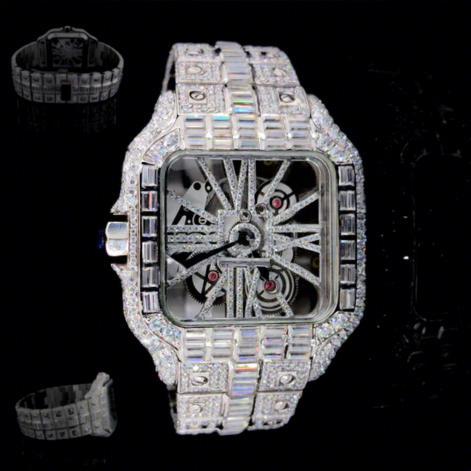 Stainless Steel Square Case VVS Moissanite Mechanical Watch Men Hip Hop 100% Pass Diamond Tester 10 Bar Water Resistance