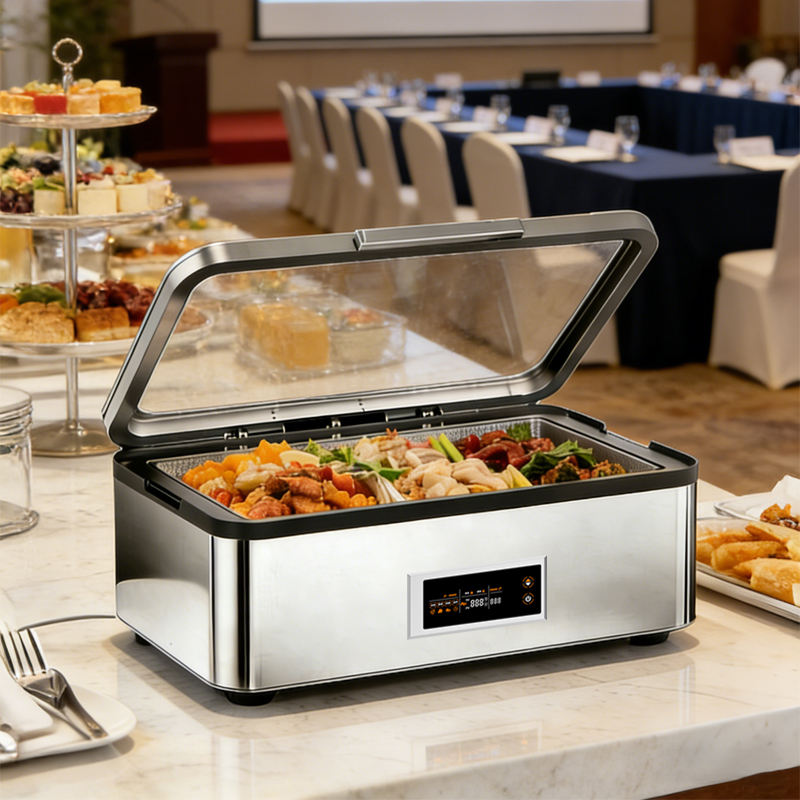 Stainless Steel Square Electric Heating Chafing Dish Smart Digital Control Food Warmer Sliver Buffet Heating Pots