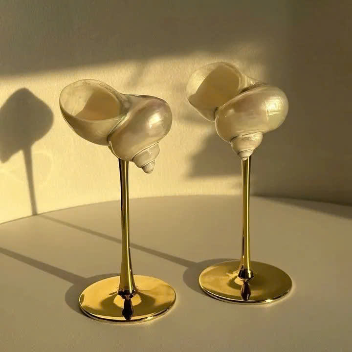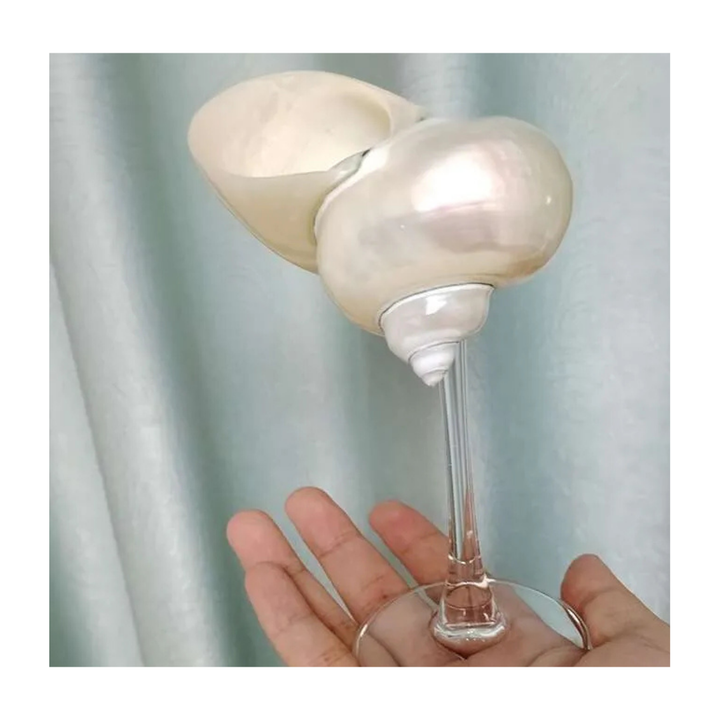 Stainless Steel Stem Goblet with Handmade Natural Conch Shell Top Creative Cocktail Cup for Wedding Bar Use or Bridesmaid Gifts