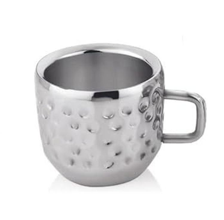 Stainless Steel Tea Sets Tea Pot and Cup Set Double Wall Coffee Cup Set of 6 Pcs With Hammering Design