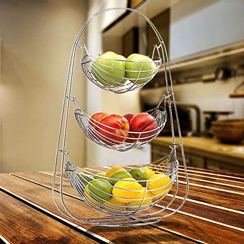 Stainless Steel Triple Step Swing Fruit and Vegetable Basket/Fruit Basket/Vegetable Basket for Kitchen and Dining Table