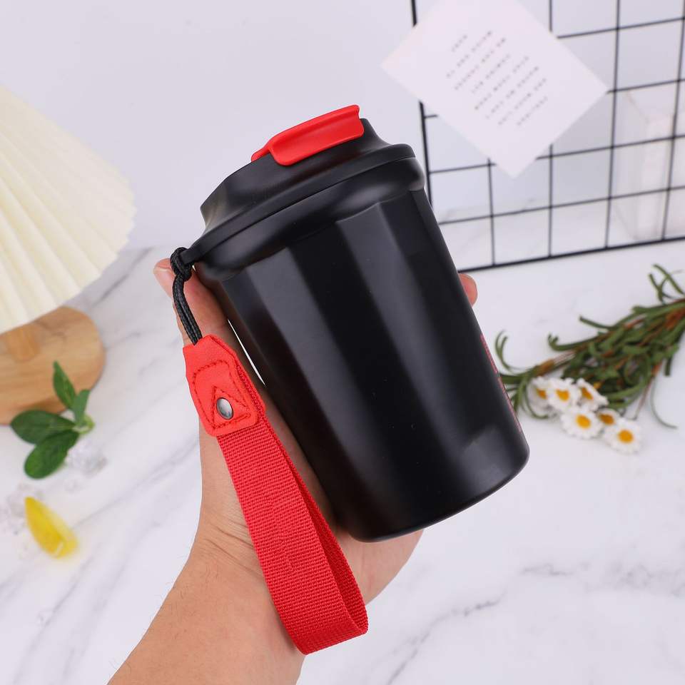 Stainless Steel Tumbler 16Oz Insulated Travel Mug Black Red With Strap For Outdoor Use