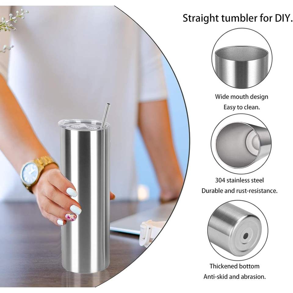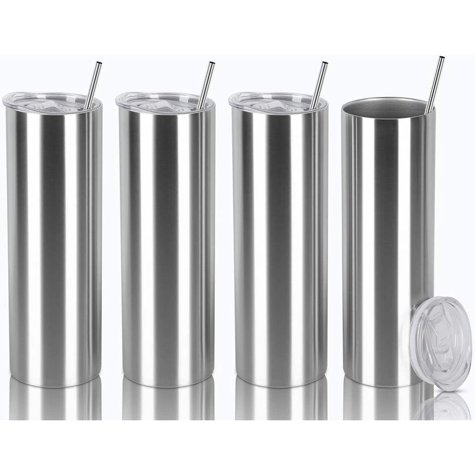 Stainless Steel Tumbler 20 Oz Vacuum Insulated With Lid And Straw Reusable For Outdoor Office Home Use Silver Color