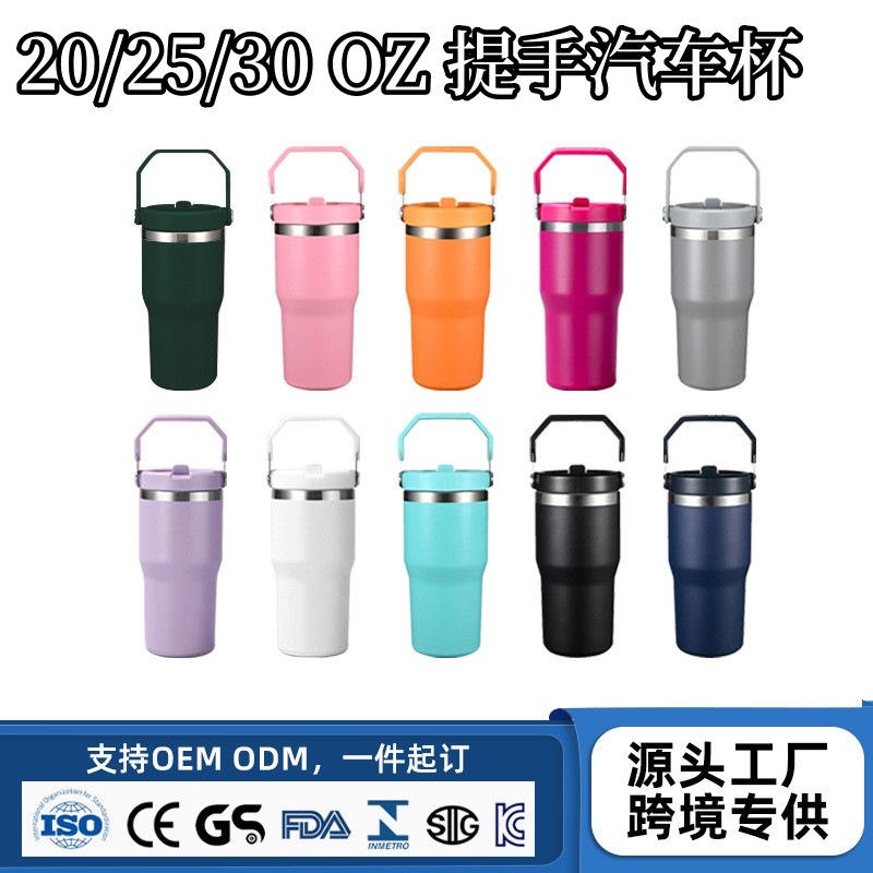Stainless Steel Tumbler 30Oz Insulated With Handle Straw For Travel Outdoor Use Pink Purple Teal White Color Options