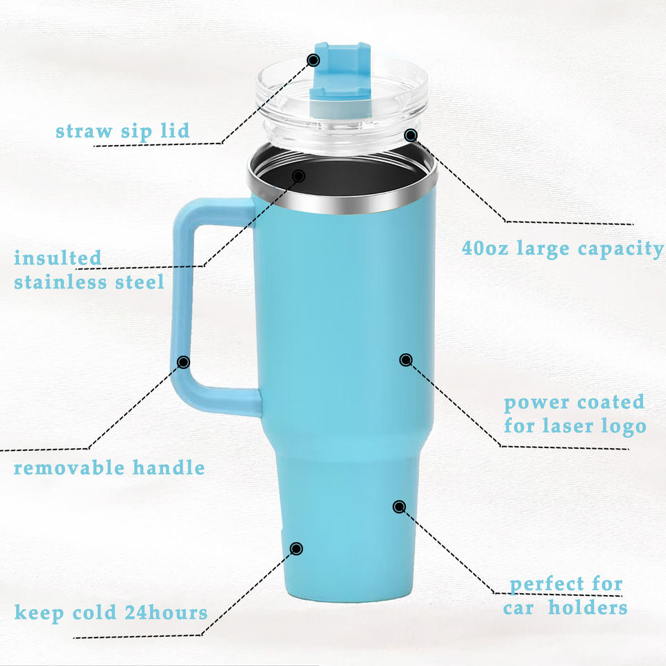 Stainless Steel Tumbler 40oz With Handle Vacuum Insulated Travel Mug With Lid And Straw Large Capacity Portable For Outdoor