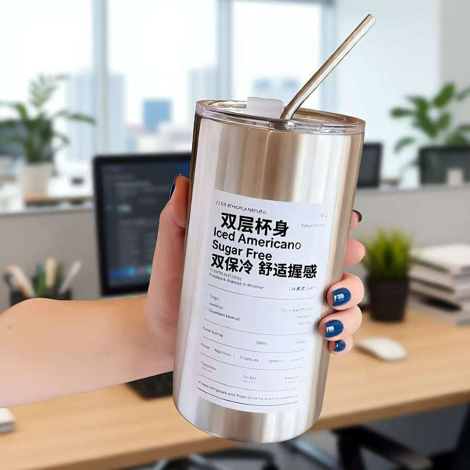 Stainless Steel Tumbler 600Ml Vacuum Insulated Large Capacity With Straw For Travel And Gift