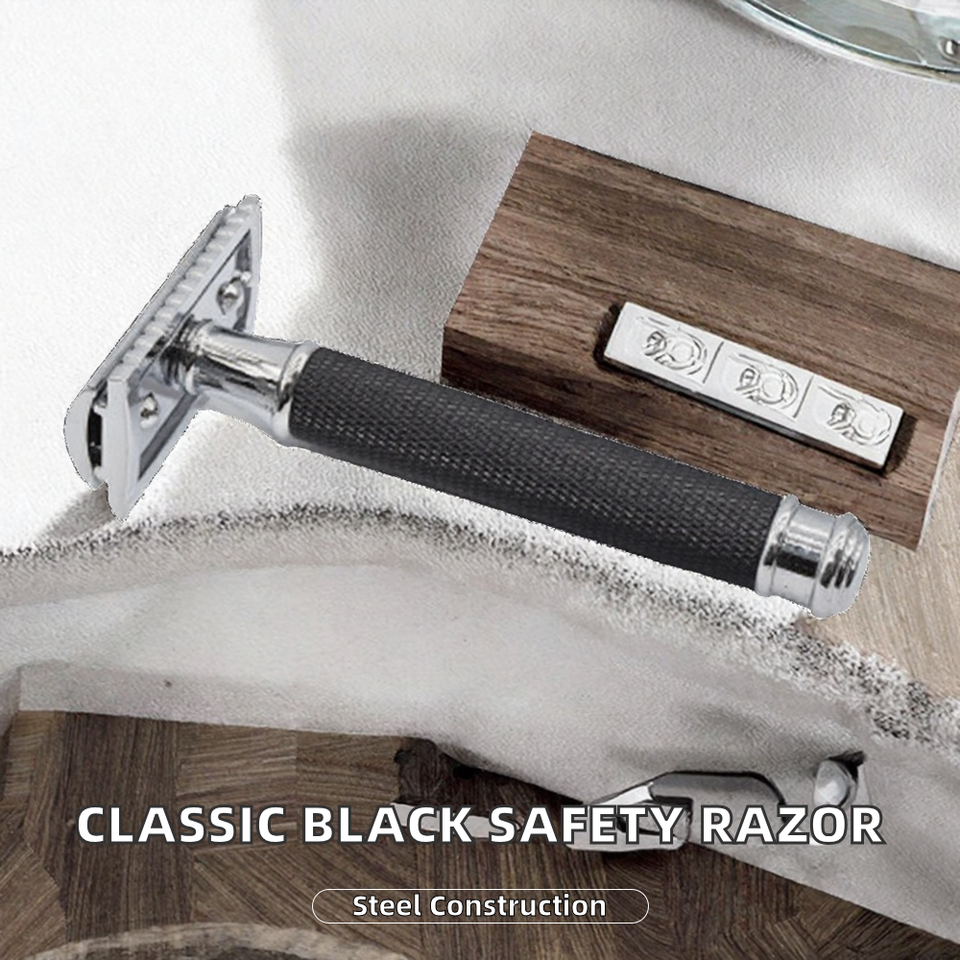 Stainless Steel Twin Blade Safety Razor with Plastic Handle Simulated Black Color Best Face & Body Shaving