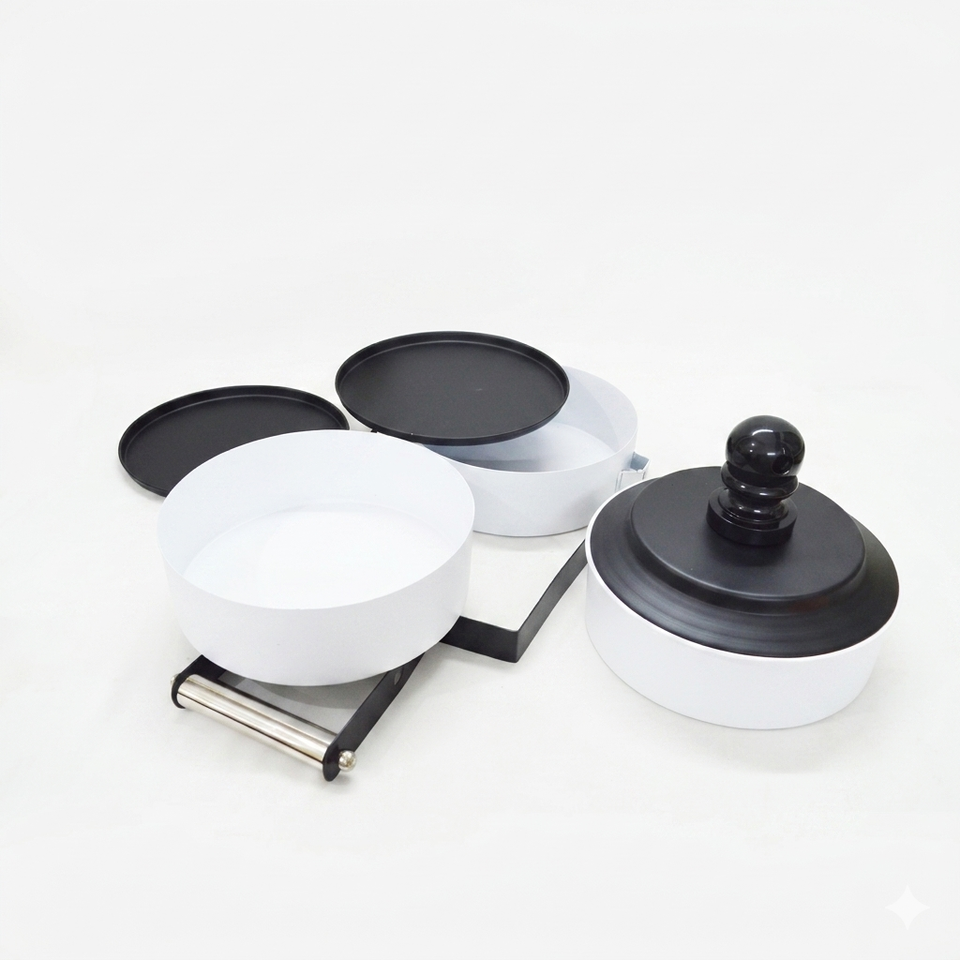 Modern 3 Tier Metal Food Container Stackable Lunch Box Portable Food Storage Carrier with Handle and Spoon Kitchenware Bento Box