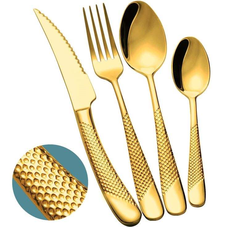 Stainless Steel Utensils Set Silverware set Matte rose gold, shiny rose gold cutlery set with hammered texture design LOW MOQ