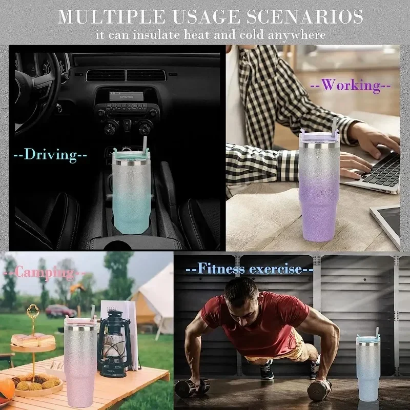 Stainless Steel Vacuum Insulated Water Bottle Thermal Coffee Car Cup Cold Hot Mugs Vacuum Flask with Straw Thermos 30Oz Cup